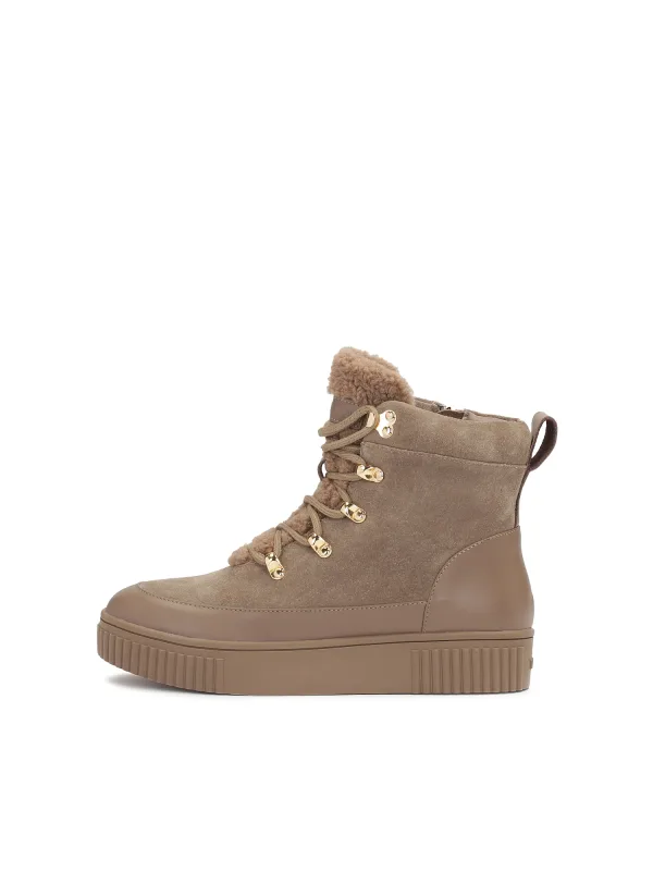 Design: Hielband; Type sluiting: Snoersluiting; Materiaal: Leer; Motief: Effen; Plateau: Met plateau; Materiaal: Glad leer, Suède; Schoenneus: Ronde neus; Extra's: Flexibele zool; Voering: Warm gevoerd; Hakhoogte: Platte hak (0-3 cm)