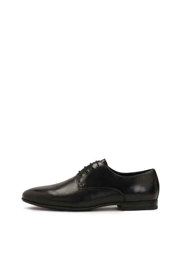 Design: Vetering met 4 gaten; Type sluiting: Snoersluiting; Materiaal: Leer; Motief: Effen; Materiaal: Glad leer; Schoenneus: Ronde neus; Extra’s: Op staal naden, Gladde stof