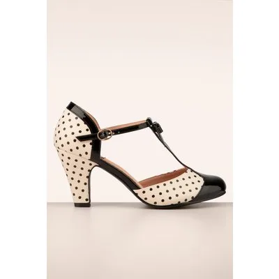 ''Time to dance the night away'' met deze Kelly Lee T-Strap Pumps in Black and Blush aan je voetjes! Uitgevoerd in een geweldige combinatie van poederroze 'faux' leder met zwarte polkadotjes en zwart 'faux' lakleder. Afgewerkt met een T-strap bandje, een rond neusje, een schattig strikje en een niet al te hoge hak. Niet alleen mooi om te zien maar ook fijn om te dragen dankzij de comfy binnenzool. Kom op... voetjes van de vloer! ;-) * Rond neusje * Verstelbaar T-strap bandje * Strikje * Stevig hakje * Comfy binnenzool * Anti-slip zool