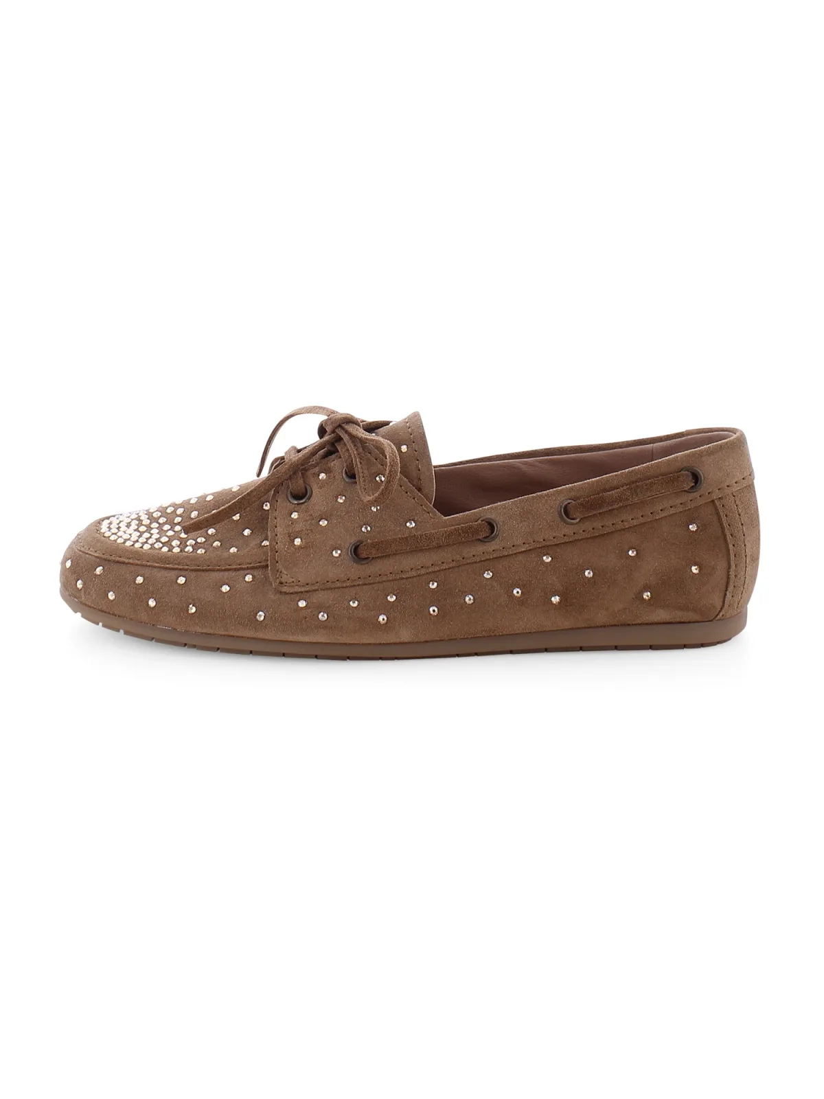 Design: Vetering met 3 gaten, Versterkte hak; Type sluiting: Slip; Materiaal: Leer; Materiaal: Suède; Schoenneus: Ronde neus; Extra's: Met halfedelstenen, Glitterend, Mocassin stiksels, Buigzame grip, Flexibele zool, Metalen oogjes; Hakhoogte: Platte hak (0-3 cm)