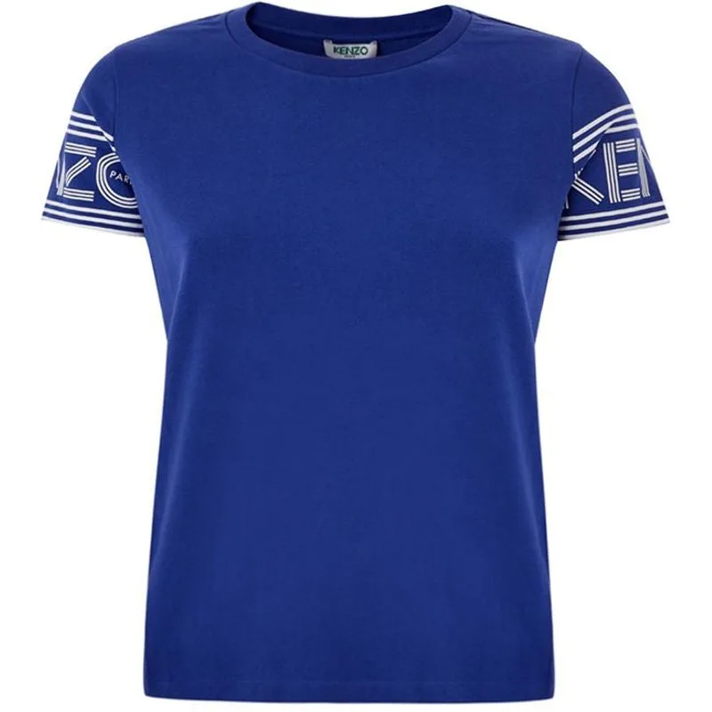 Kenzo Electric Blue Katoenen Dames T-shirt, met ronde hals en korte mouwen. Witte rubberen logo aangebracht op de mouwen. Samenstelling: 100% Katoen - Sku binnen: 23LU164