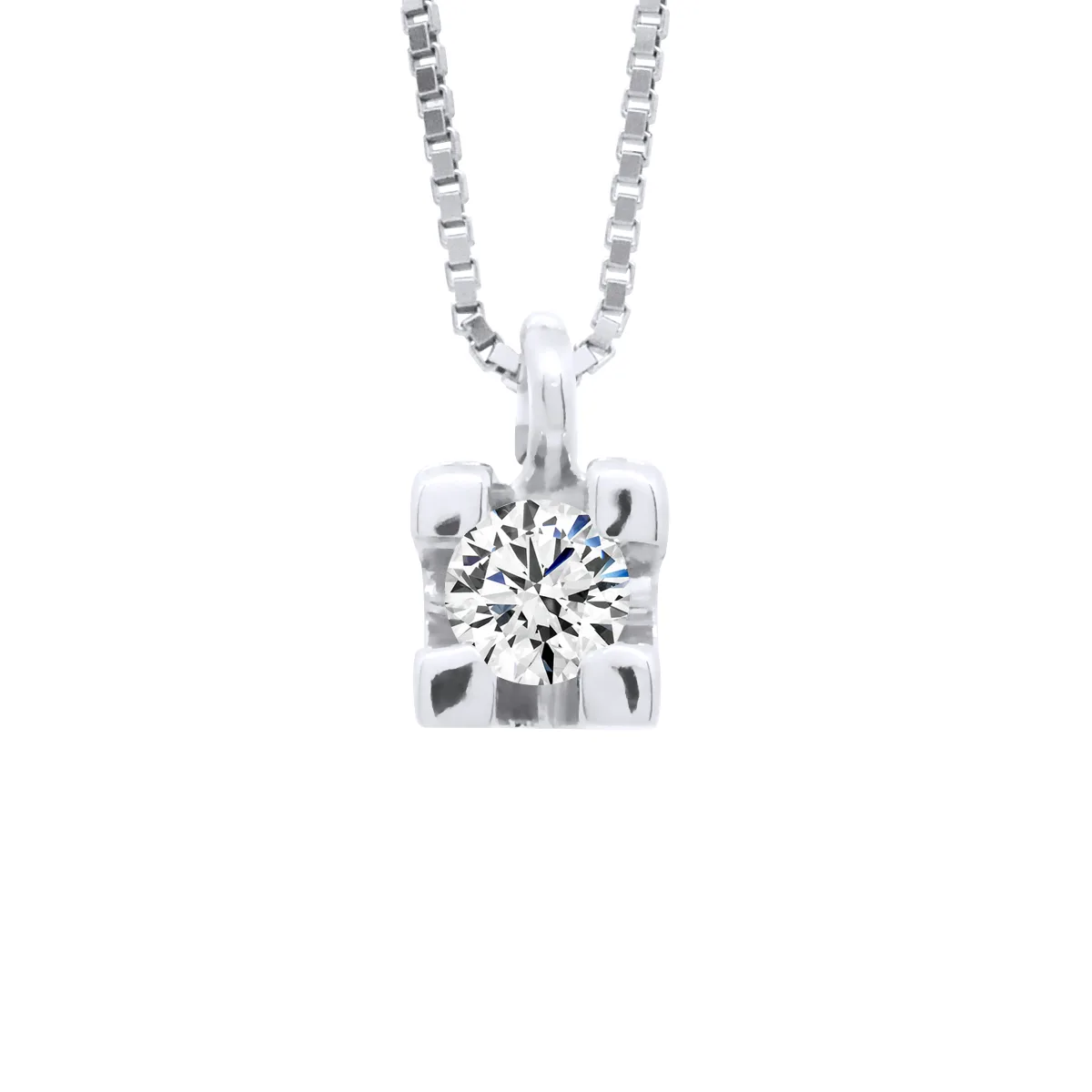 Solitaire Ketting Diamonds 0,10 Cts (1 x 0.10 CTS) - Quality HSi (Color H - Quality Si1) - Chain Venetian White Gold 375 duizendste - Lengte: 42cm - 2 jaar garantie - Wordt geleverd in een koffer met een Certificaat van Echtheid en een internationale garantie - al onze juwelen zijn gemaakt in Frankrijk.
