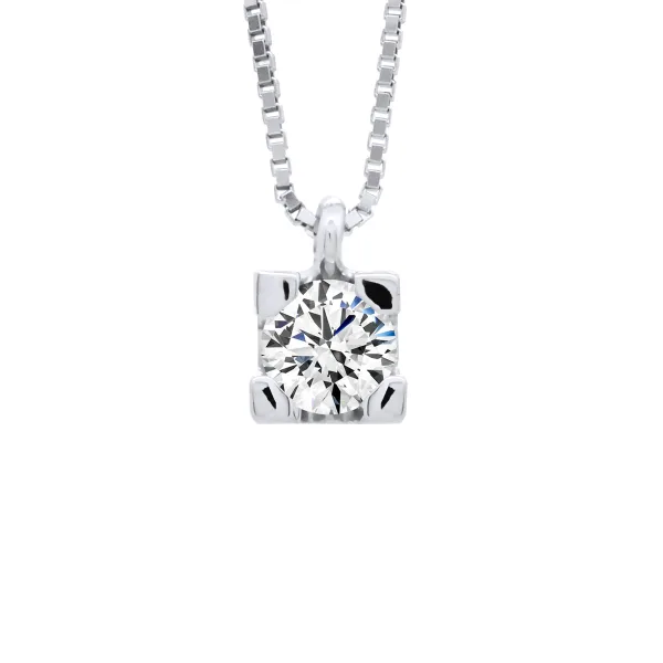 Solitaire Ketting Diamonds 0,15 Cts (1 x 0.15 CTS) - Quality HSi (Color H - Quality Si1) - Chain Venetian White Gold 375 duizendste - Lengte: 42cm - 2 jaar garantie - Wordt geleverd in een koffer met een Certificaat van Echtheid en een internationale garantie - al onze juwelen zijn gemaakt in Frankrijk.