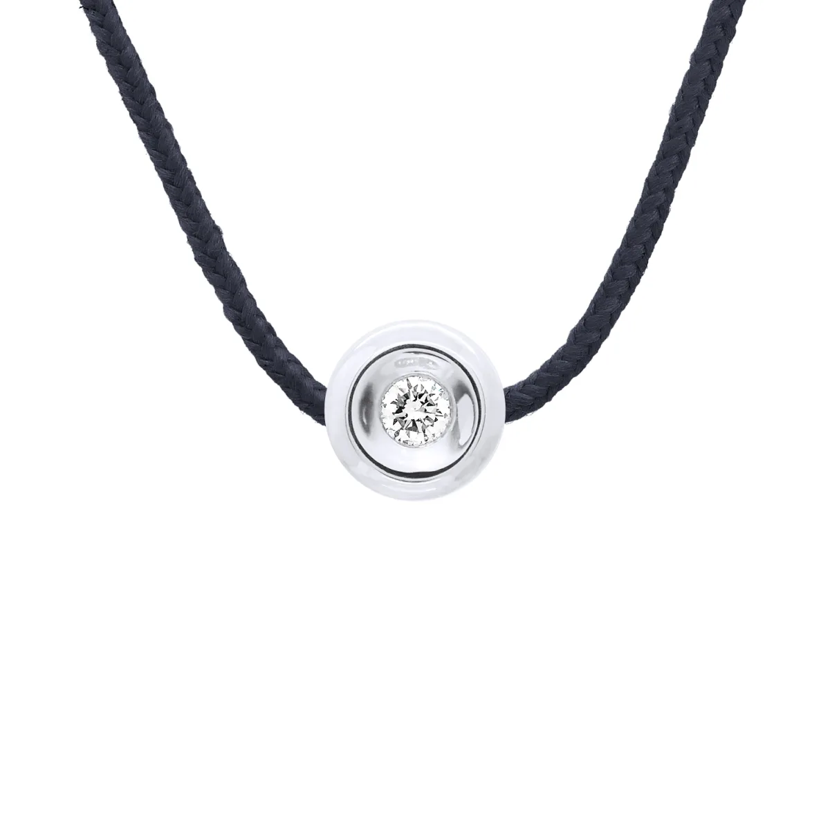 Nylon Gevlochten Ketting Link ZWART - Bezel met echte Diamond 0,05 Cts - Lengte: 42 cm - Wordt geleverd in een koffer met een certificaat van echtheid en een internationale garantie - Al onze juwelen zijn gemaakt in Frankrijk.