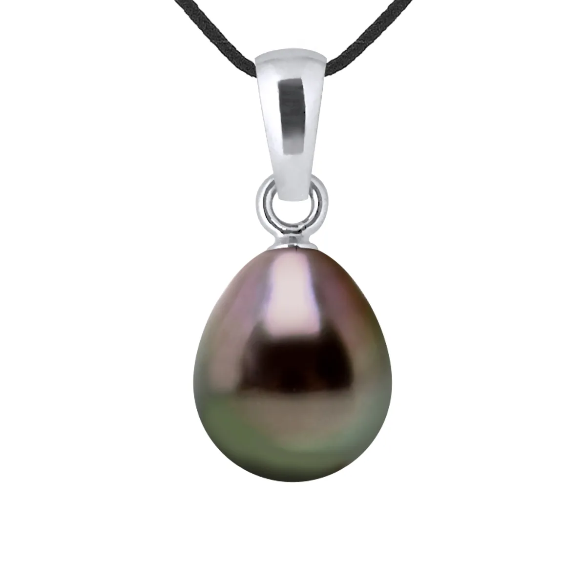 Ketting - 925 duizendste - Pearl Tahitiaanse pear 8-9 mm - Een link Liefde nylon gevlochten ZWART - Lengte 42 cm - Wordt geleverd in een koffer met een certificaat van echtheid en een internationale garantie - Al onze sieraden zijn gemaakt in Frankrijk.