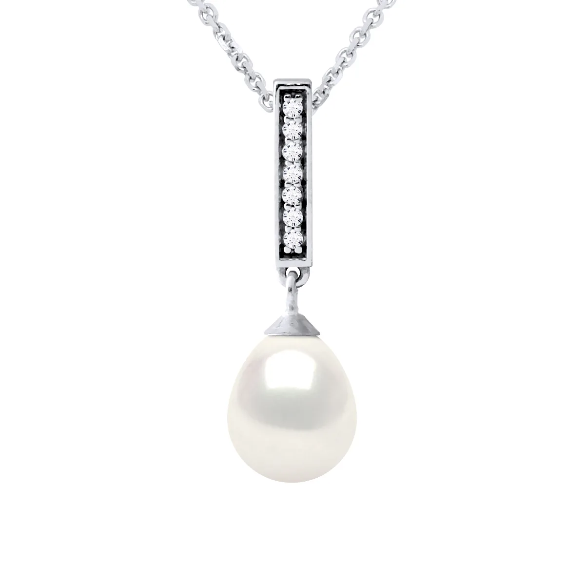 Ketting sieraden - Water Pearl 7-8 mm verse peer - Wit - bestrating Rod zirkonium oxides - Knitwear veroordelen 925 duizendste rhodium - Lengte 42 cm - Wordt geleverd in een koffer met een certificaat van echtheid en een internationale garantie - Al onze sieraden zijn in Frankrijk .