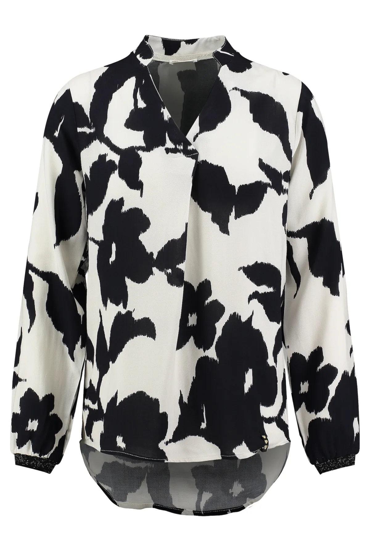 Blouse type: Wijde blouse; Design: Ronde zoom, Verlengd rugpand; Materiaal: Viscose; Motief: Bloemenprint; Kraag: Tuniek kraag; Extra's: All-over patroon; Pasvorm: Losse pasvorm; Armlengte: Lange mouw; Lengte: Normale lengte