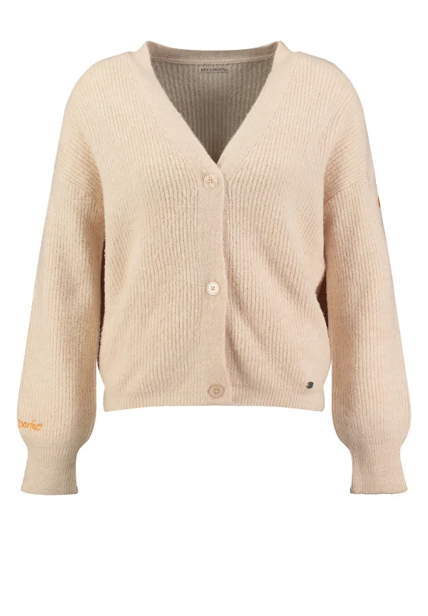 Design: Geribd ceintuurtje, Overcut schouder; Type sluiting: Knoopsluiting; Materiaal: Knitwear; Halstype: V-hals; Motief: Effen; Details: Borduursels; Extra's: Op staal naden; Pasvorm: Losse pasvorm; Armlengte: Lange mouw; Lengte: Normale lengte