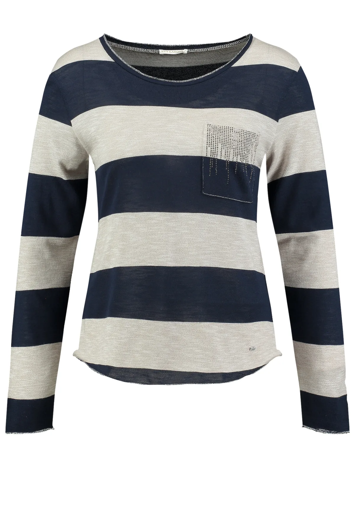 Design: Borstzak; Materiaal: Viscose; Halstype: Ronde hals; Motief: Gestreept; Details: Sierstenen; Extra's: Voelt zacht aan; Pasvorm: Normale pasvorm; Armlengte: Lange mouw; Lengte: Lange pasvorm