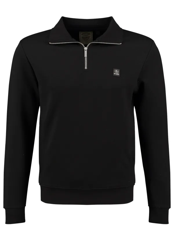 Design: Geribd ceintuurtje, Staande kraag, Halve rits; Type sluiting: Ritssluiting; Materiaal: Sweatstof; Halstype: Schipperskraag; Motief: Effen; Extra's: Label patch/label flag, Op staal naden; Pasvorm: Normale pasvorm; Armlengte: Lange mouw