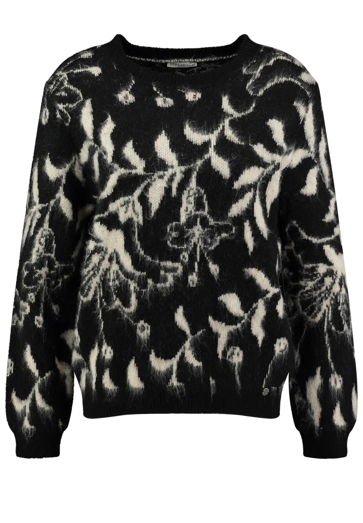 Key Largo Trui ‘Plant’ ivoor / zwart