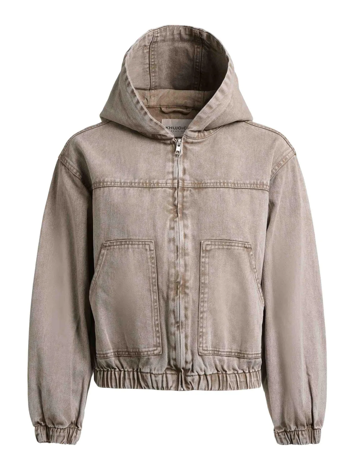 Design: Capuchon met trekkoord, Overcut schouder, Zakken aan de zijkant; Type sluiting: Ritssluiting; Type jas: Bomberjack; Voering: Niet gevoerd; Materiaal: Denim; Motief: Effen; Extra's: Gewassen effect; Pasvorm: Losse pasvorm