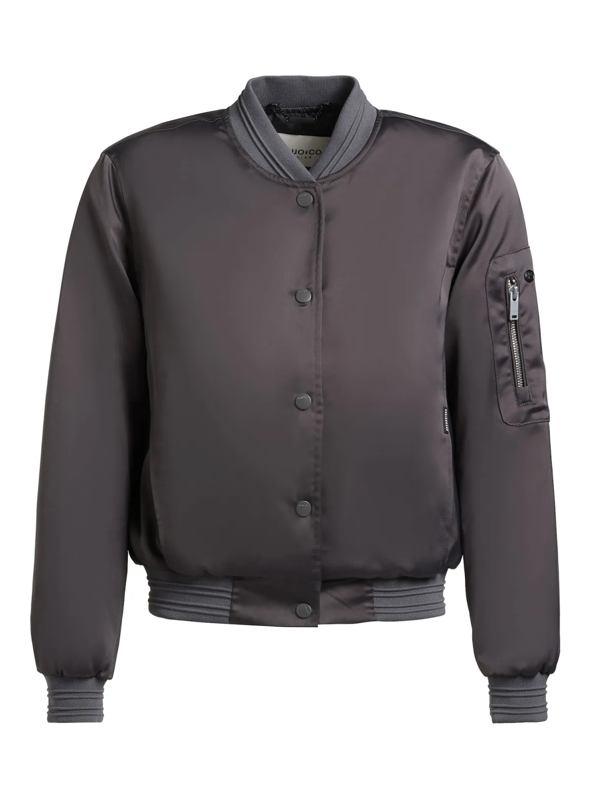 Design: Drukknopen, Geribd ceintuurtje, Zakken aan de zijkant; Type sluiting: Drukknoop; Type jas: Bomberjack; Voering: Licht gevoerd; Motief: Effen; Extra's: Op staal naden; Pasvorm: Normale pasvorm