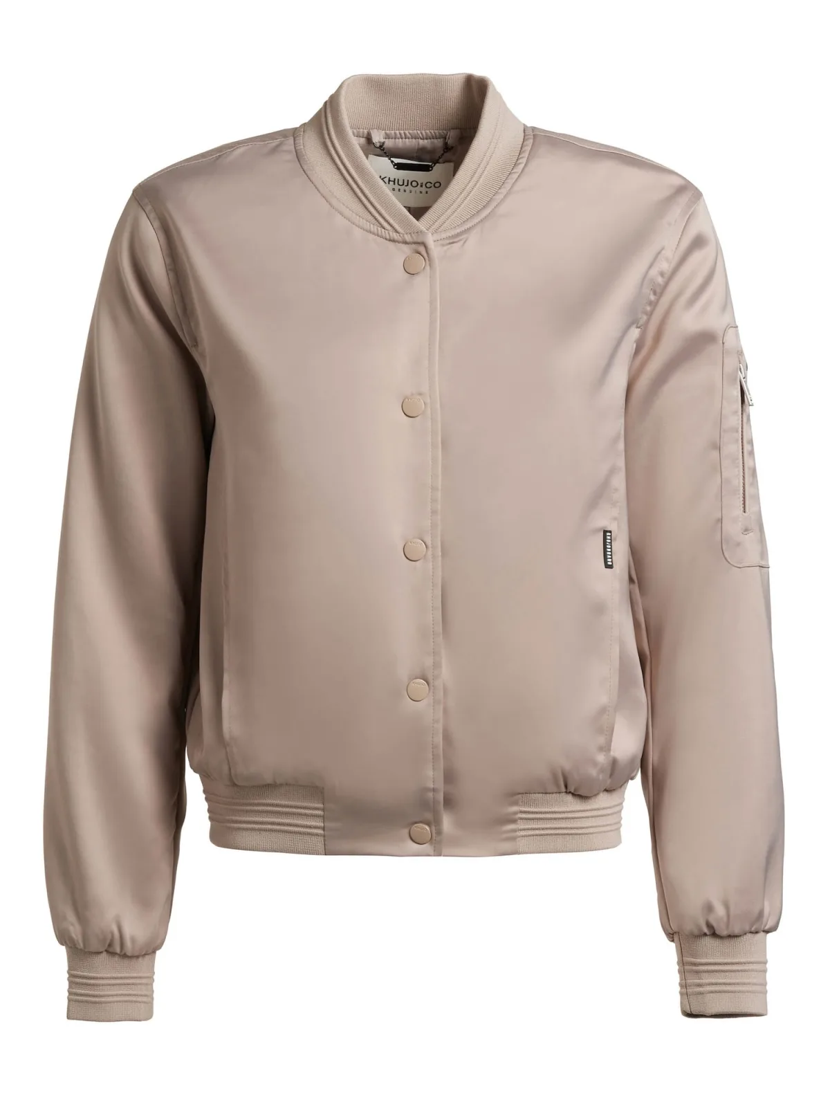 Design: Geribbelde kraag, Mouwzak, Zakken aan de zijkant; Type sluiting: Drukknoop; Type jas: Bomberjack; Voering: Licht gevoerd; Motief: Effen; Extra's: Label patch/label flag, Op staal naden, Gladde stof; Pasvorm: Normale pasvorm