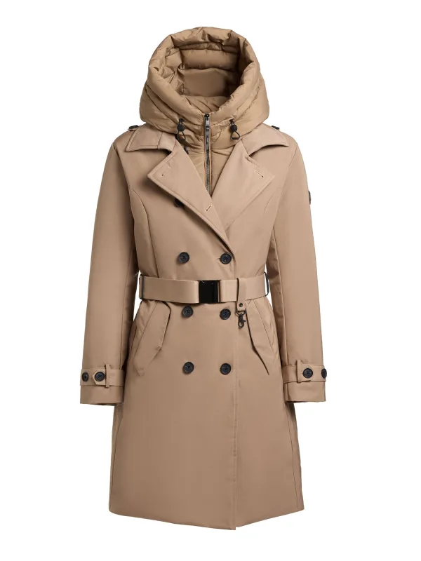 Type mantel: Trenchcoat; Design: Afneembare capuchon, Capuchon met opstaande kraag, Capuchon met trekkoord, Gelaagde look, Revers kraag, Met riem, Opzet-/flapzak; Type sluiting: Knoopsluiting; Voering: Licht gevoerd; Motief: Effen; Extra's: Label patch/label flag, Op staal naden, Gladde stof; Pasvorm: Normale pasvorm; Lengte: Normale lengte