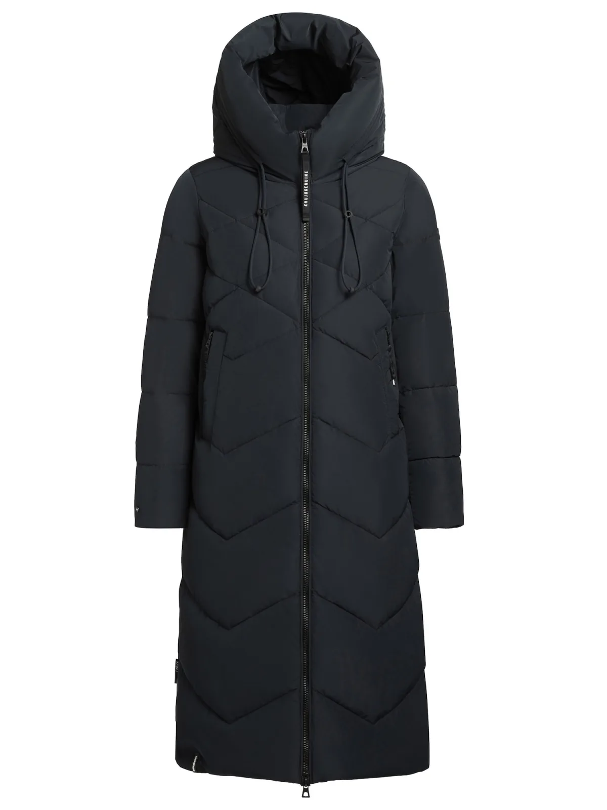 Type mantel: Gewatteerde jas; Design: Met capuchon; Type sluiting: Ritssluiting; Type jas: Gewatteerde jas; Voering: Warm gevoerd; Motief: Effen; Extra's: Label patch/label flag; Pasvorm: Normale pasvorm; Lengte: Lange pasvorm