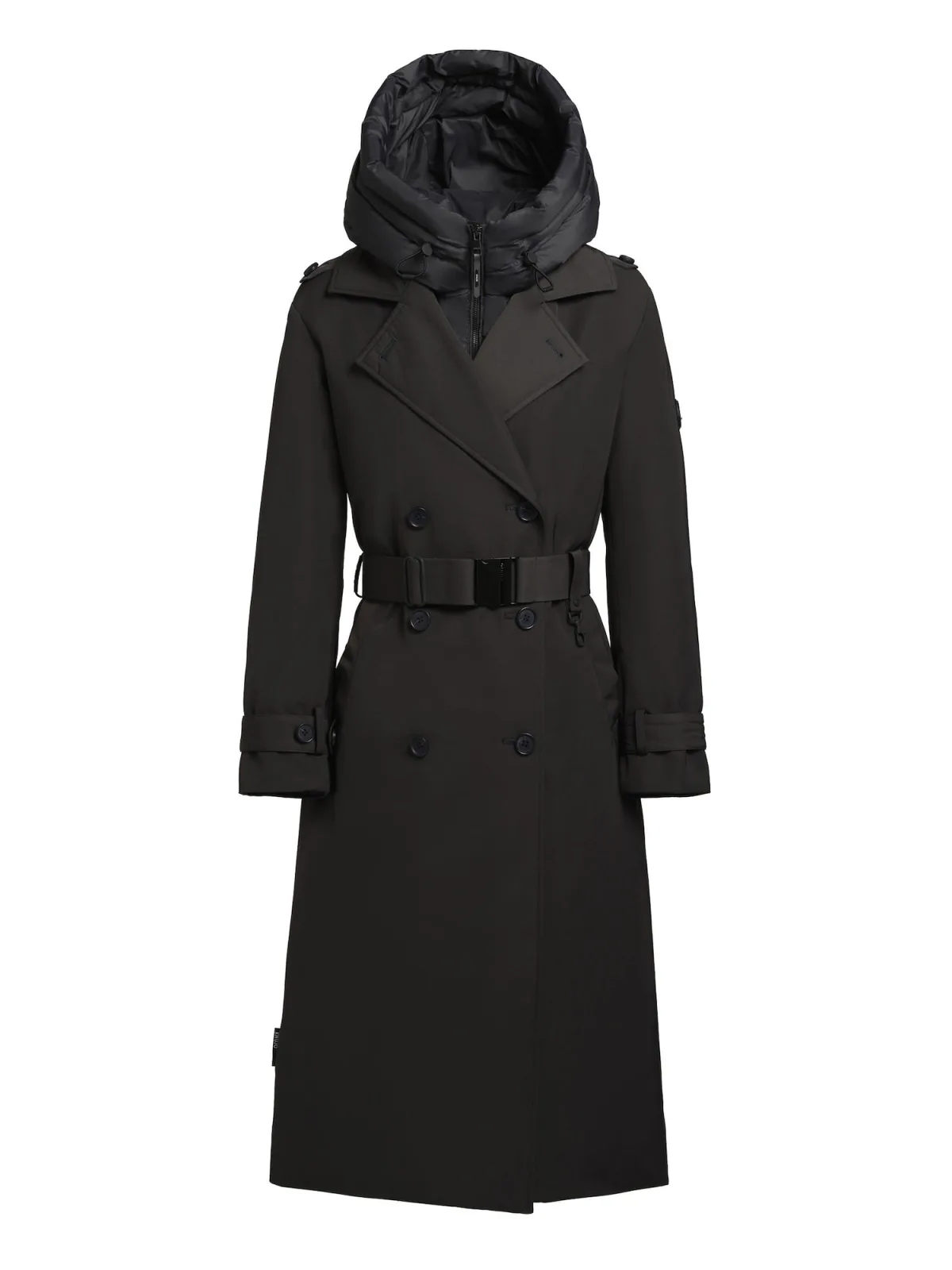 Type mantel: Trenchcoat; Design: Opzet-/flapzak, Zakken aan de zijkant; Type sluiting: Knoopsluiting; Voering: Warm gevoerd; Motief: Effen; Extra's: Label patch/label flag; Pasvorm: Slanke pasvorm; Lengte: Normale lengte
