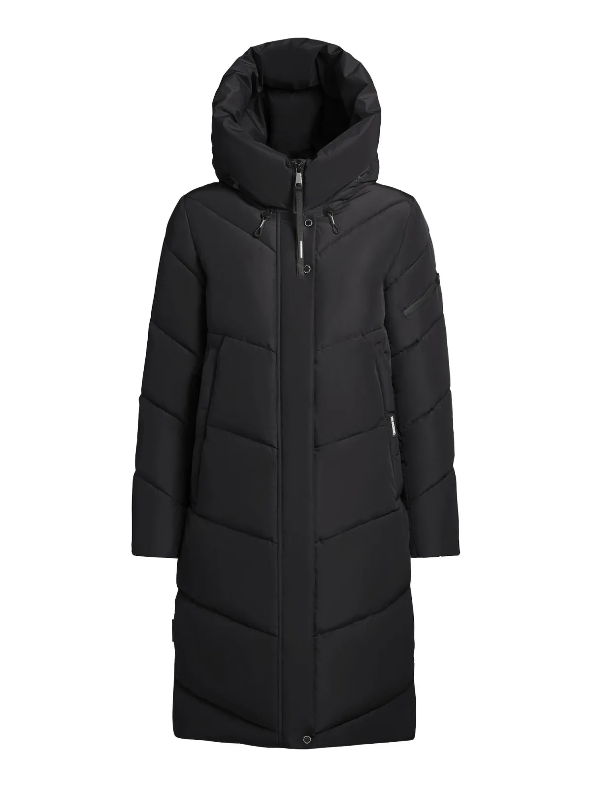 Type mantel: Gewatteerde jas; Design: Zakken aan de zijkant, Ritszakken aan de zijkant; Type sluiting: Ritssluiting; Voering: Warm gevoerd; Motief: Effen; Extra's: Op staal naden; Pasvorm: Aansluitende pasvorm; Lengte: Lange pasvorm