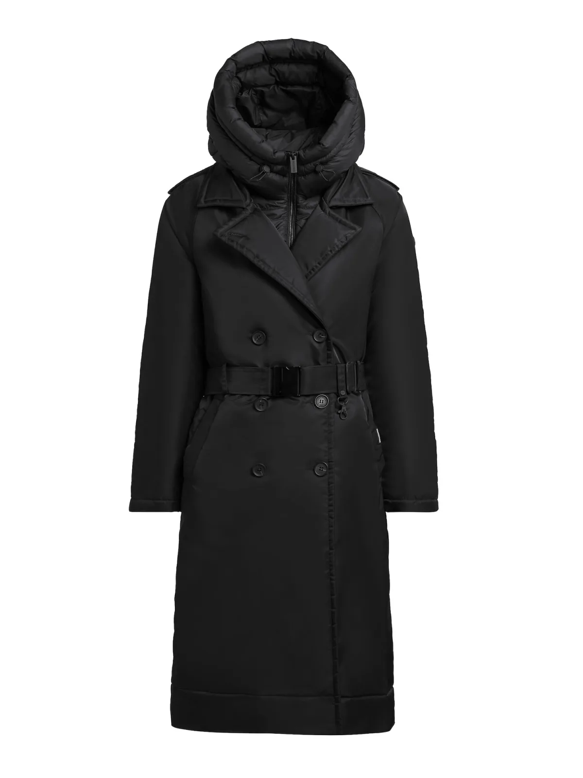 Type mantel: Trenchcoat; Design: Capuchon met trekkoord, Met riem, Zakken aan de zijkant; Type sluiting: Knoopsluiting; Voering: Warm gevoerd; Motief: Effen; Extra's: Op staal naden; Pasvorm: Normale pasvorm; Lengte: Normale lengte
