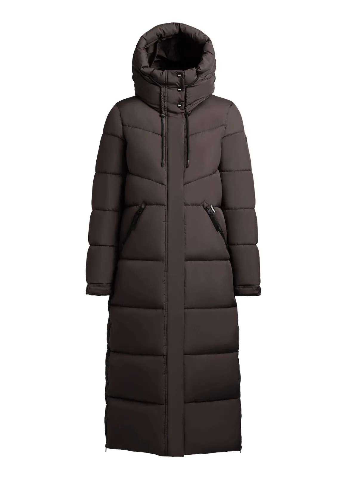 Type mantel: Gewatteerde jas; Design: Drukknopen, Met capuchon, Verborgen rits, Combideelbare ritssluiting, Ritszakken aan de zijkant, Ritszakken aan de zijkant; Type sluiting: Ritssluiting; Voering: Warm gevoerd; Motief: Effen; Extra's: Label patch/label flag, Stiksels, Op staal naden, Gladde stof; Pasvorm: Normale pasvorm; Lengte: Lange pasvorm