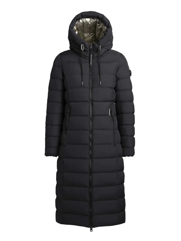 Type mantel: Gewatteerde jas; Design: Ritssluiting, Capuchon met trekkoord, Zakken aan de zijkant; Type sluiting: Ritssluiting; Voering: Warm gevoerd; Motief: Effen; Extra's: Stiksels, Op staal naden; Pasvorm: Slanke pasvorm; Lengte: Lange pasvorm