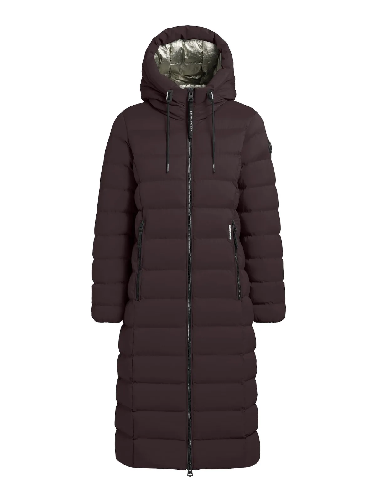 Type mantel: Gewatteerde jas; Design: Capuchon met trekkoord, Combideelbare ritssluiting, Ritszakken aan de zijkant; Type sluiting: Ritssluiting; Voering: Warm gevoerd; Motief: Effen; Extra's: Label patch/label flag, Stiksels, Op staal naden; Pasvorm: Aansluitende pasvorm; Lengte: Lange pasvorm