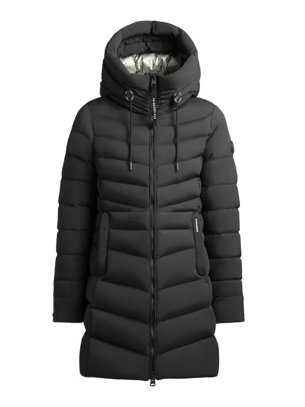 Type mantel: Gewatteerde jas; Design: Mouw rits, Capuchon met trekkoord, Staande kraag, Getailleerd model, Combideelbare ritssluiting, Ritszakken aan de zijkant; Type sluiting: Ritssluiting; Voering: Warm gevoerd; Motief: Effen; Extra's: Fleece binnenvoering, Stiksels, Op staal naden; Pasvorm: Normale pasvorm; Lengte: Lange pasvorm