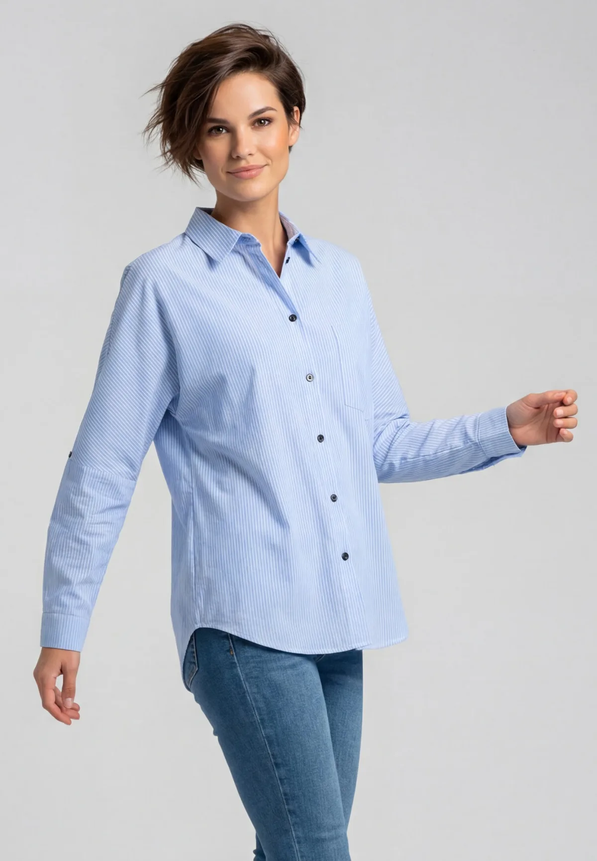 Blouse type: Klassieke blouse; Design: Gevoerde zoom/rand; Type sluiting: Knoopsluiting; Motief: Gestreept; Kraag: Kentkraag; Extra's: All-over patroon; Pasvorm: Normale pasvorm; Armlengte: Lange mouw; Lengte: Normale lengte