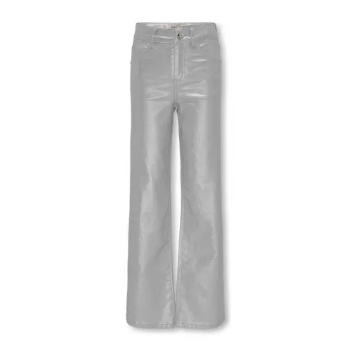 KIDS ONLY GIRL coated wide leg broek KOGJUICY zilver metallic