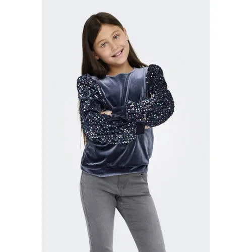 KIDS ONLY GIRL fluwelen blousetop blauw met pailletten Prijzen