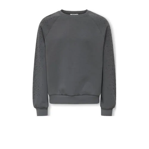 Deze KIDS ONLY GIRL sweater van ONLY heeft lange mouwen en een ronde hals. Gemaakt van sweat materiaal, geribde boorden en strass steentjes maken het af. Je draagt deze sweater makkelijk bij verschillende outfits.