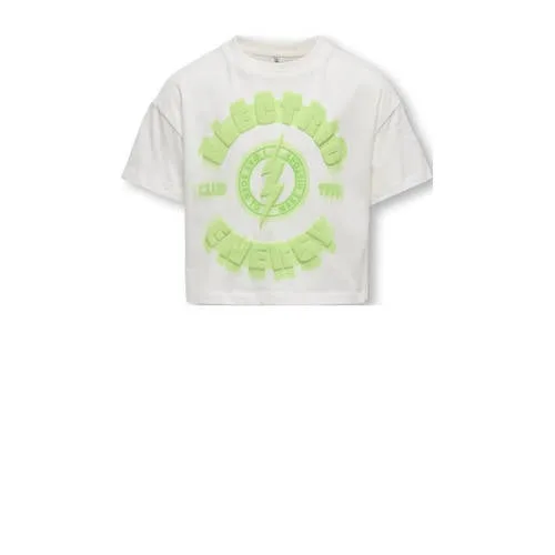 Dit T-shirt van KIDS ONLY GIRL is wit met neon groene accenten. Gemaakt van 100% katoen en met korte mouwen en een ronde hals. Het KOGDAPHNE LIFE model voelt fijn aan voor meisjes.