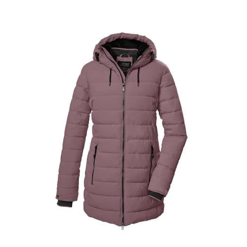 Dames gewatteerde jas van Killtec. warme stijl en betrouwbare bescherming voor het koude seizoenDe functionele damesparka in donslook van Killtec is de ideale keuze voor de herfst- en wintermaanden. Door de winddichte, waterafstotende (10.000 mm waterkolom) én ademende eigenschappen blijf je comfortabel en beschermd, zelfs bij wisselend weer. De zacht gevoerde capuchon, verstelbaar in zowel lengte als breedte, biedt extra warmte en bescherming wanneer je die nodig hebt.Voor optimaal draagcomfort is de parka uitgerust met gebreide manchetten die tocht buiten houden en een 2-weg ritssluiting die extra bewegingsvrijheid geeft – ideaal tijdens wandelingen, fietstochten of dagelijkse activiteiten. Twee zijzakken met rits en een binnenzak bieden voldoende ruimte voor je essentials, waaronder je telefoon.De stijlvolle, tijdloze look wordt gecombineerd met een duurzamer karakter: de parka is behandeld met een waterafstotende finish.KOW 55 WMN QLTD PRK – de perfecte balans tussen warmte, comfort en duurzaamheid voor het herfst- en winterseizoen.