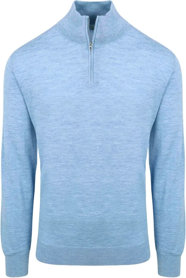 King Essentials The Michael Half Zip Pull Merino Lichtblauw Prijzen
