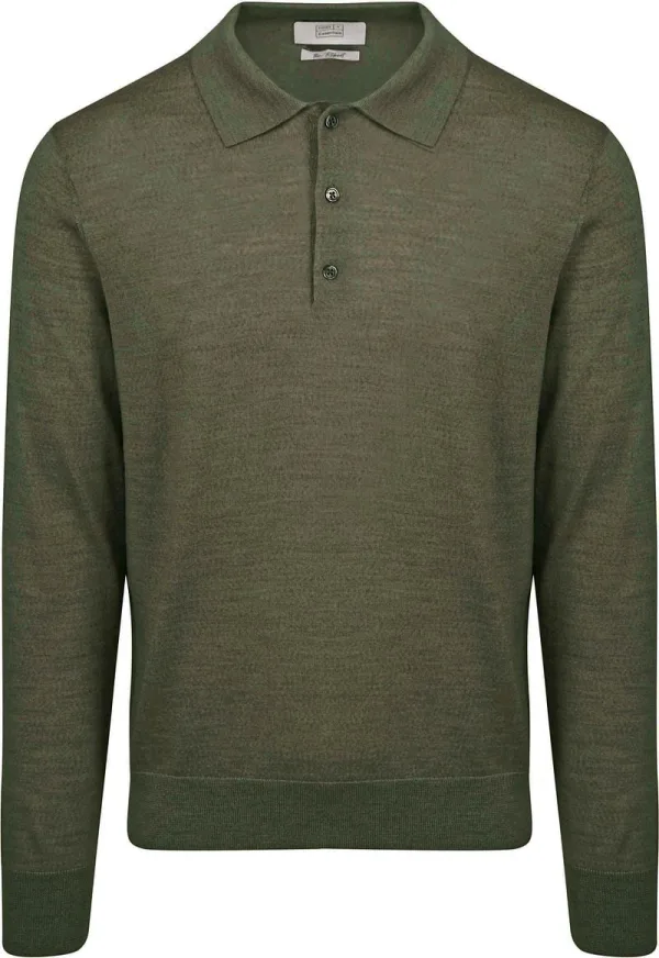 King Essentials The Robert Long Sleeve Poloshirt Merino Army Groen Prijzen