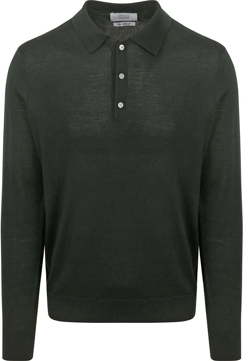King Essentials The Robert Long Sleeve Poloshirt Merino Donkergroen Prijzen