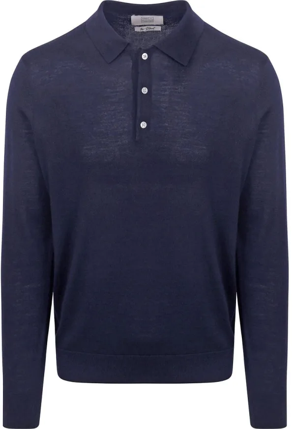 King Essentials The Robert Long Sleeve Poloshirt Merino Navy Prijzen