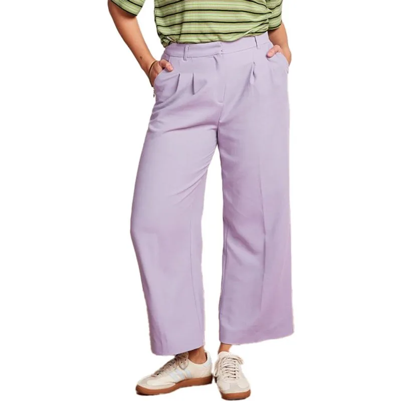 De Fintan Cropped Pants Folly van King Louie is de perfecte keuze voor een stijlvolle en zorgeloze look. De zachte, lila paarse kleur maakt je outfit fris en vrolijk. De hoge tailleband accentueert je figuur en biedt een comfortabele pasvorm. Het wijdvallende ontwerp zorgt voor een luchtig gevoel, ideaal voor warme dagen. Combineer deze pantalon met een bijpassend gilet voor een complete look. Geniet van de soepele stof die je vrijheid van beweging geeft. Deze pantalon is een must-have voor elke modebewuste vrouw. Maak jouw garderobe compleet met deze veelzijdige broek.