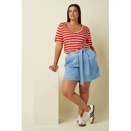 Ga voor een frisse, zomerse look met deze King Louie denim short Marnie Festa in light blue denim. De korte broek heeft een regular waist en een regular pasvorm, waardoor de broek mooi recht langs je benen valt zonder te strak te zitten. De lichte denimkleur geeft een zachte, vrouwelijke uitstraling en laat zich makkelijk combineren met je favoriete T-shirt, blouse of top.Details die elke dag werken Gemaakt van 100% katoen voor een soepele stof die prettig aanvoelt op de huid Light blue denim kleur voor een luchtige, tijdloze uitstraling Regular waist en regular pasvorm voor een comfortabele, rechte fit Rits- en haaksluiting aan de voorkant voor een nette afwerking Zijzakken voor praktisch gebruik en een relaxed silhouet Effen design, ideaal als basis in je garderobe Wasbaar op 30 graden, drogen op lage temperatuur (1 punt) en warm strijkbaar (2 punten)Zomerse short voor elke dagDeze denim short is een fijne keuze voor lentedagen en zomerse weekenden. Draag de Marnie Shorts Festa Light Denim met een luchtige blouse en sandalen voor een verzorgde look, of met een ingetogen T-shirt en sneakers voor een casual combinatie.King Louie stijlKing Louie staat bekend om kleding met een herkenbare, vrouwelijke stijl en een comfortabele pasvorm. De ontwerpen worden gemaakt met aandacht voor detail, zodat je kledingstuk er niet alleen mooi uitziet, maar ook prettig draagt en lang een favoriet in je kast blijft.Een betrouwbare basisshort die je gemakkelijk keer op keer uit de kast pakt.