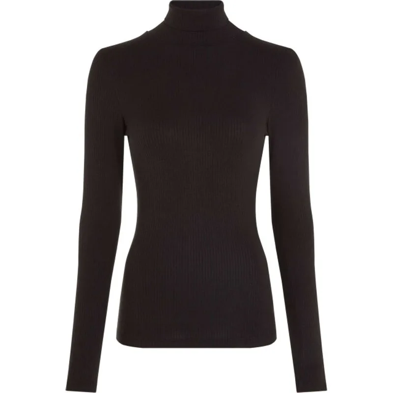 Deze zwarte rollneck top van King Louie voelt als een subtiele upgrade voor je dagelijkse garderobe. De fijne ribstructuur en de mix van viscose met een vleugje elastane zorgen voor een zachte stretch die meebeweegt met je lichaam, terwijl de col juist nét dat beetje elegantie toevoegt. Doordat de top een normale lengte en pasvorm heeft, kun je hem moeiteloos combineren onder een jasje of over een trui en hij behoudt zijn nette silhouet gedurende de dag. Het slank gebreide materiaal legt een fijne nadruk op lijnen zonder te overdrijven, wat zowel bij casual als nettere looks werkt. Dankzij de ingetogen zwarte kleur blijft de top een betrouwbare basis die je outfit direct meer samenhang geeft. Laat hem het middelpunt zijn van een rustige, zelfverzekerde stijl die plezier brengt bij het aankleden.