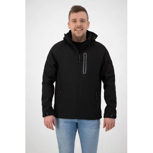 Heren jas Kevan van Kjelvik. Deze jas is gemaakt van ademend en waterafstotend soft touch stretch materiaal. Op de voorkant heeft de jas zakken met rits. De capuchon is afneembaar.