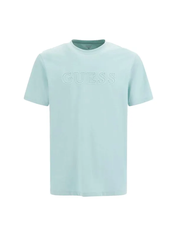 Guess Classic Heren T-shirt van blauw katoen. Authentiek Guess-merkkledingstuk - streetwear/sportswear design van Guess - modieus Guess voor heren, perfect voor dagelijks gebruik - dit blauwe Guess T-shirt past perfect bij de rest van je garderobe - comfortabel katoen - klassiek