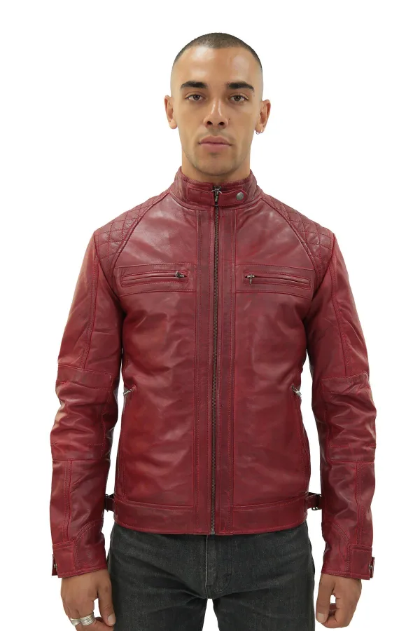 Klassiek leren gewatteerd bikerjack voor heren, Silsden