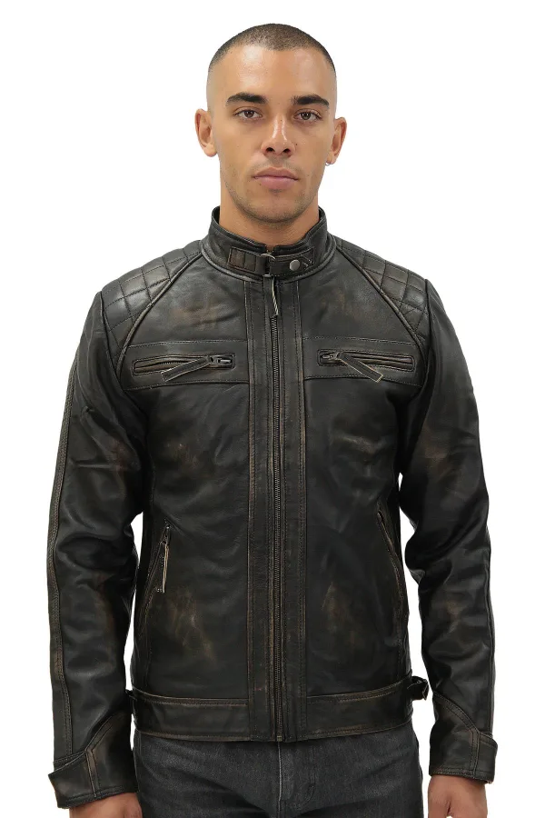 Klassiek leren gewatteerd bikerjack voor heren, Silsden