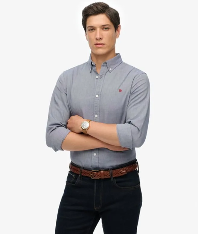 Ontspannen snit - de klassieke snit van Superdry. Niet te strak en niet te los. Precies goed. Kies je gebruikelijke maat. Eenvoudige kraag met knoopsluiting. Plissé achter en geborduurd handtekeninglogo op de borst. Het klassieke Oxford overhemd met lange mouwen is een absolute must-have in elke garderobe. Versierd met een geüpdatet minimalistisch logo op de borst, zorgt dit overhemd met een eenvoudige maar effectieve pasvorm ervoor dat je verfijnde en strakke outfits kunt creëren terwijl je je authentieke stijl laat zien.