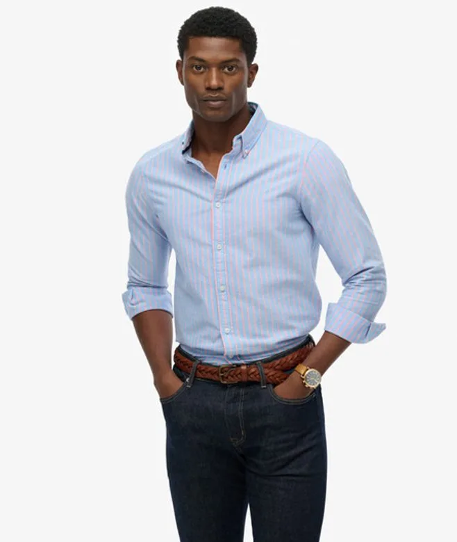 Relaxte pasvorm - de klassieke Superdry-pasvorm. Niet te nauwsluitend, niet te ruim, precies goed. Kies je gebruikelijke maat Enkele kraag met knoopsluiting Plooi op de rug en een kenmerkend geborduurd logo op de borst Het klassieke Oxford-overhemd met lange mouwen is een absolute must-have voor je garderobe. Het overhemd heeft een eenvoudig maar fraai silhouet en een klein logo in nieuwe uitvoering op de borst. Zo hou je je look verfijnd en ingetogen terwijl je je authentieke stijl laat zien.