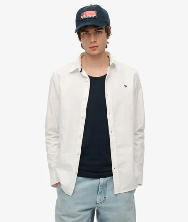 Relaxte pasvorm - de klassieke Superdry-pasvorm. Niet te nauwsluitend, niet te ruim, precies goed. Kies je gebruikelijke maat Enkele kraag met knoopsluiting Plooi op de rug en een kenmerkend geborduurd logo op de borst Het klassieke Oxford-overhemd met lange mouwen is een absolute must-have voor je garderobe. Het overhemd heeft een eenvoudig maar fraai silhouet en een klein logo in nieuwe uitvoering op de borst. Zo hou je je look verfijnd en ingetogen terwijl je je authentieke stijl laat zien.