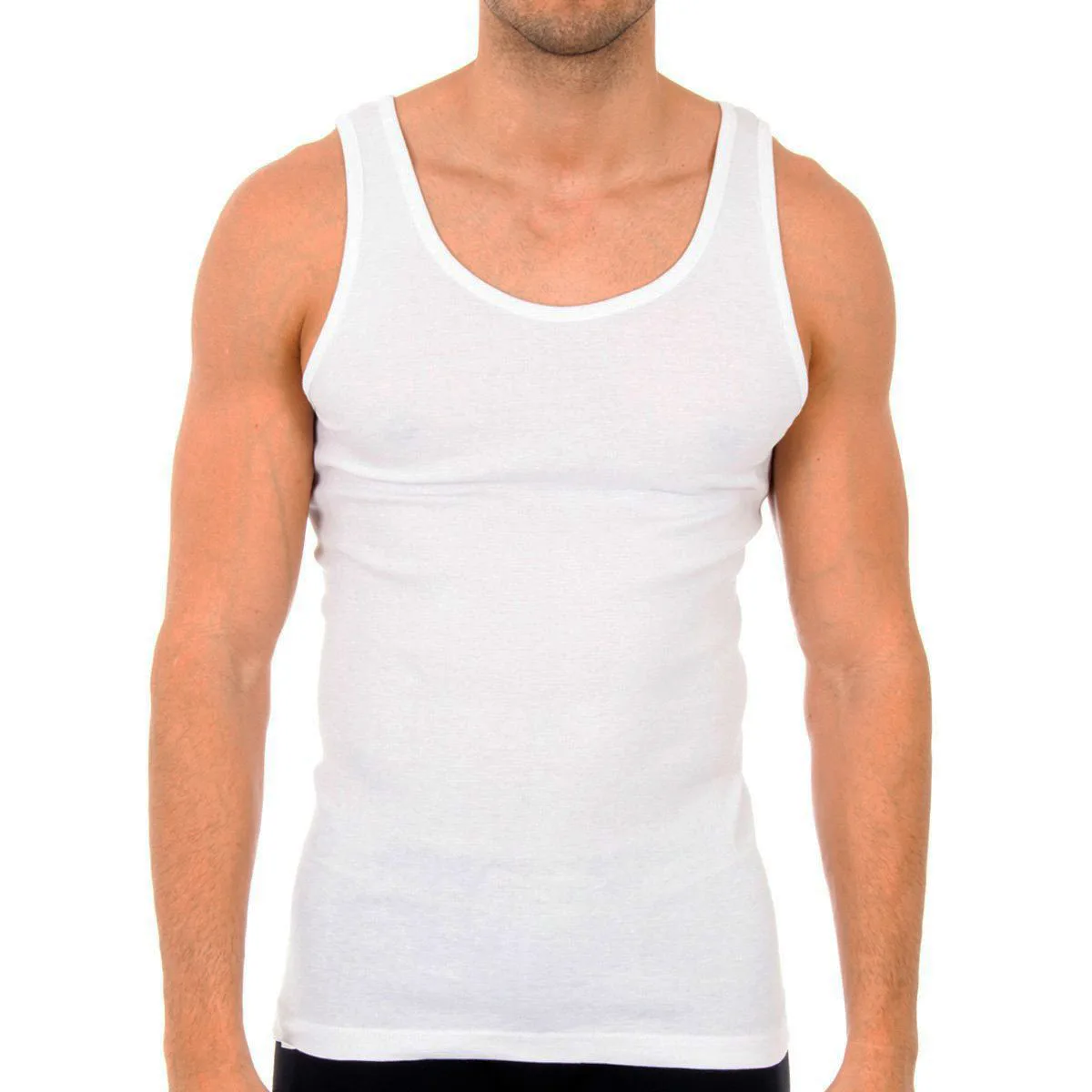 Klassiek T-shirt voor herenondergoed. Brede band. Ronde hals. Gladde stof. Geribd polyester katoen. Kledingstuk dat perfect aansluit op het lichaam. Samenstelling: 50% Acryl, 50% Polyester Onderhoud: Handwas op max. temperatuur. 40º. Geen bleekmiddel gebruiken. Droger is niet toegestaan. Strijken op max. temperatuur. 130º. Niet chemisch reinigen.