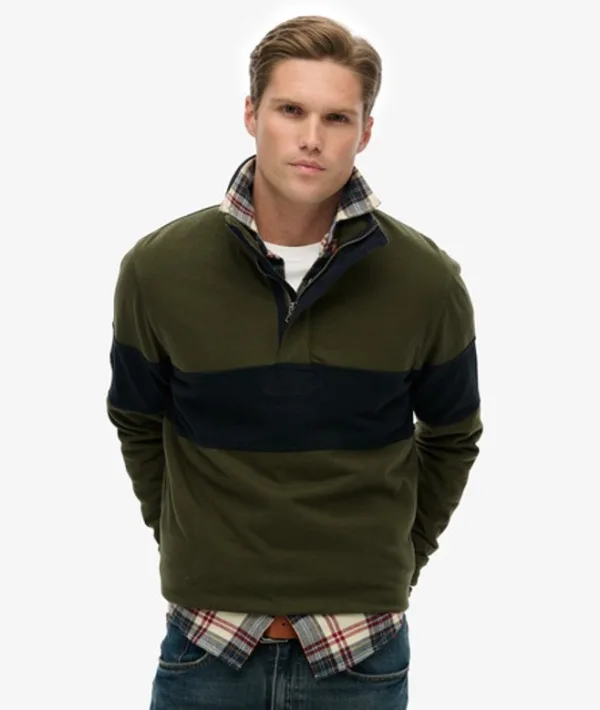 Superdry Classic Rugby Henley Lange Mouw Poloshirt Groen XL Man