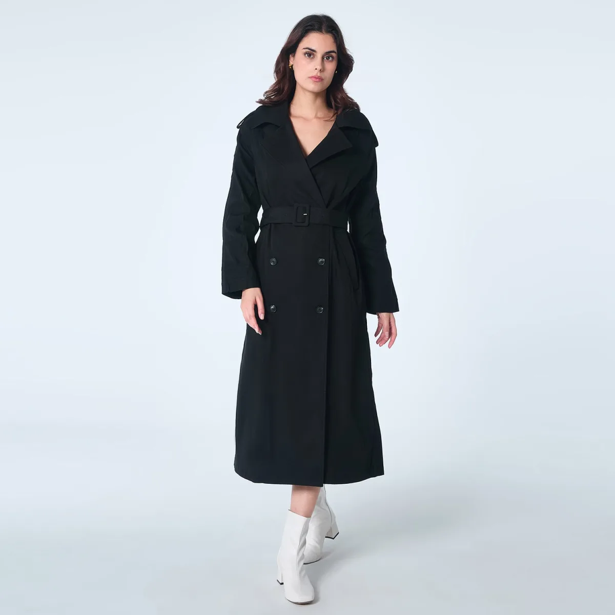 Een tijdloze trenchcoat met een knoopsluiting aan de rechterkant. Een chic en nonchalant item met vele mogelijkheden, een must-have voor elke garderobe. Te dragen zonder mate vanaf de herfst. Productdetails: Model: recht, verstelbaar in de taille en polsen Lengte: 124 cm Lange mouwen Trenchkraag Double-breasted middenvoor